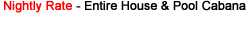 Pool Apartment Only – no more than a 40 day advance reservation can be accepted and renter may be subject the possibility of owner occupying main house (but not pool area) during the rental. Pool Apartment is not available as a separate rental during Holidays or when main house is rented. Discounts can apply to the Main House (during non-holiday periods only) by locking down the pool apartment/cabana. Please contact us for further details and rates.